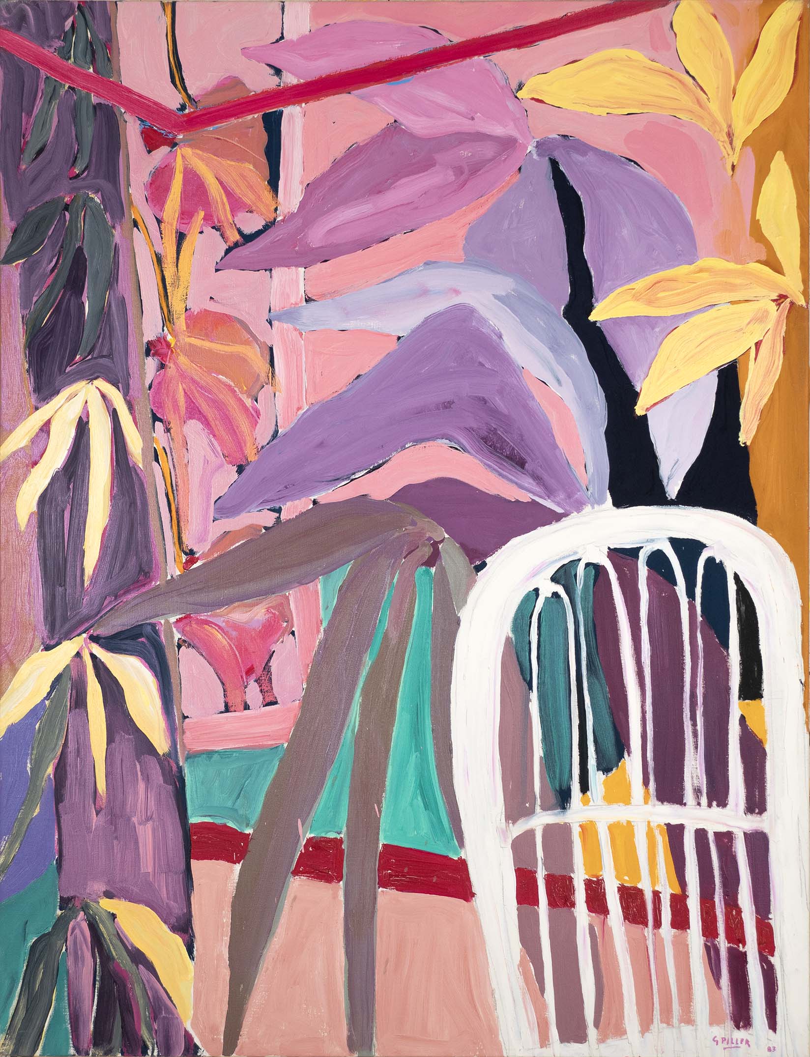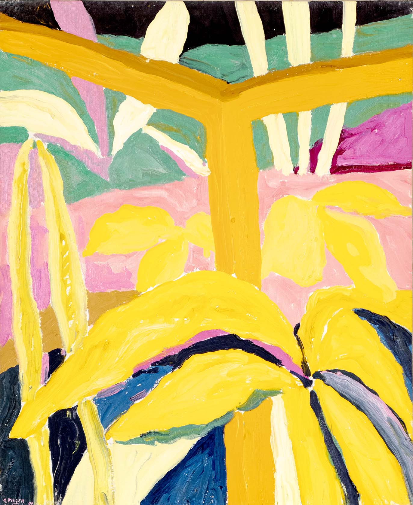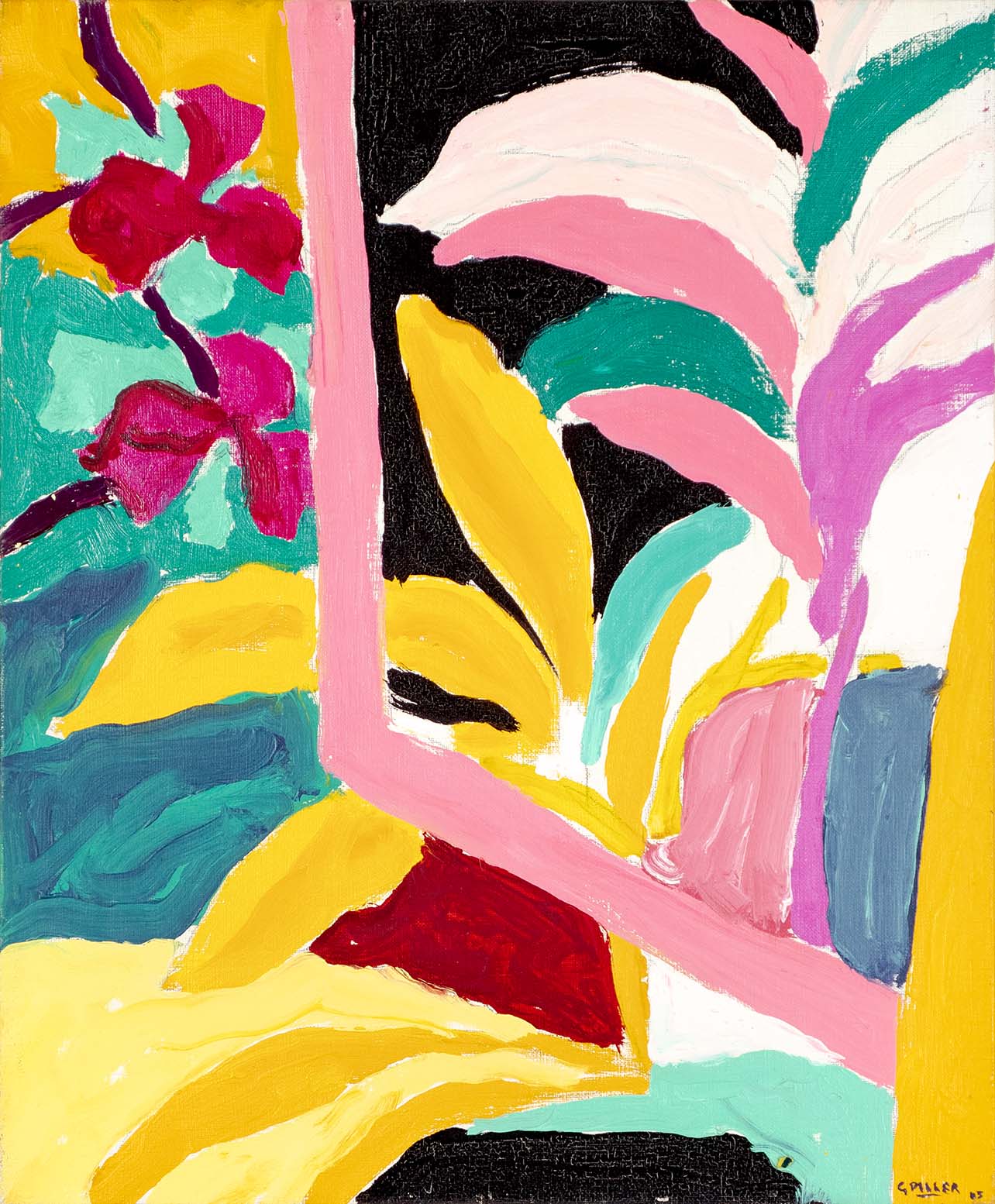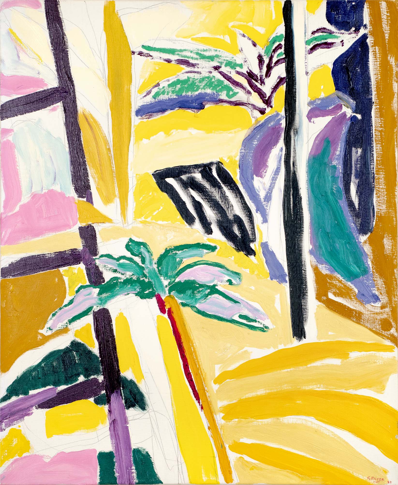 Les huiles du début de la décennie 1980 sont très proches des pastels qui les précèdent de quelques années. Le sujet y est encore largement reconnaissable : il s’agit souvent de formes végétales et d’intérieurs, qui ne sont pas sans évoquer la géométrie et la sensibilité d’un Matisse. Au fil du temps, le sujet s’estompe : l’inspiration végétale est encore prépondérante, mais les toiles gagnent en abstraction et deviennent de plus en plus le terrain de jeu de contrastes et de rythmes.