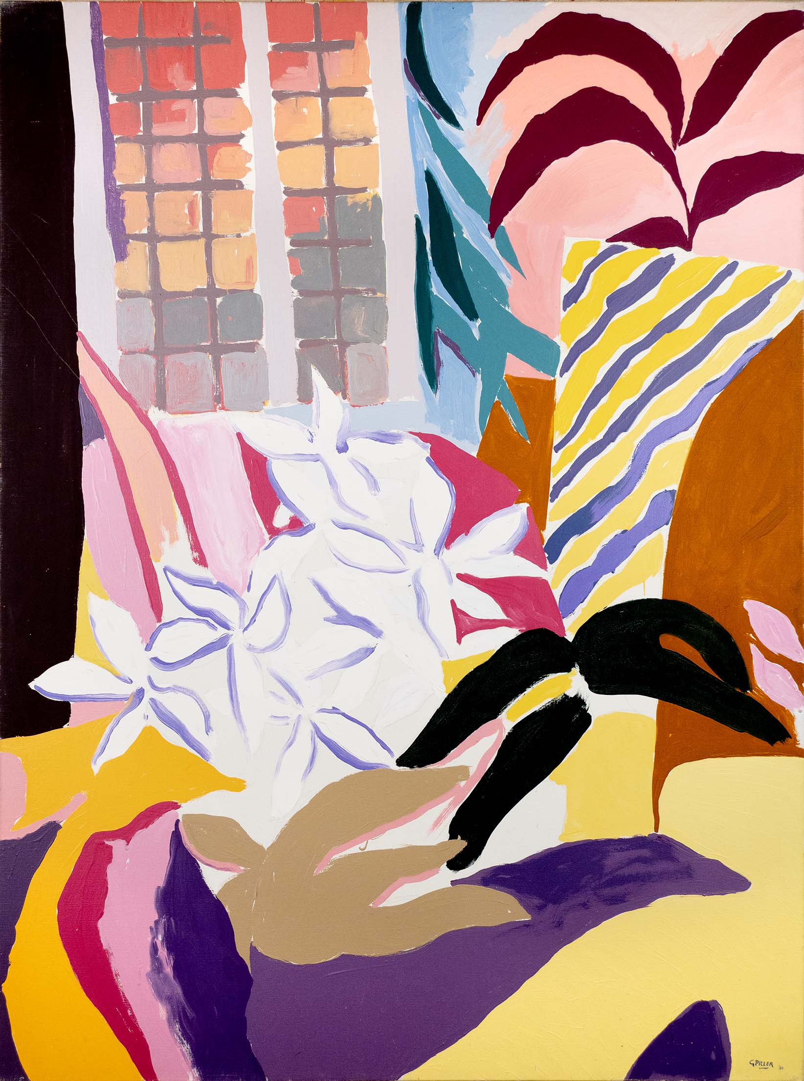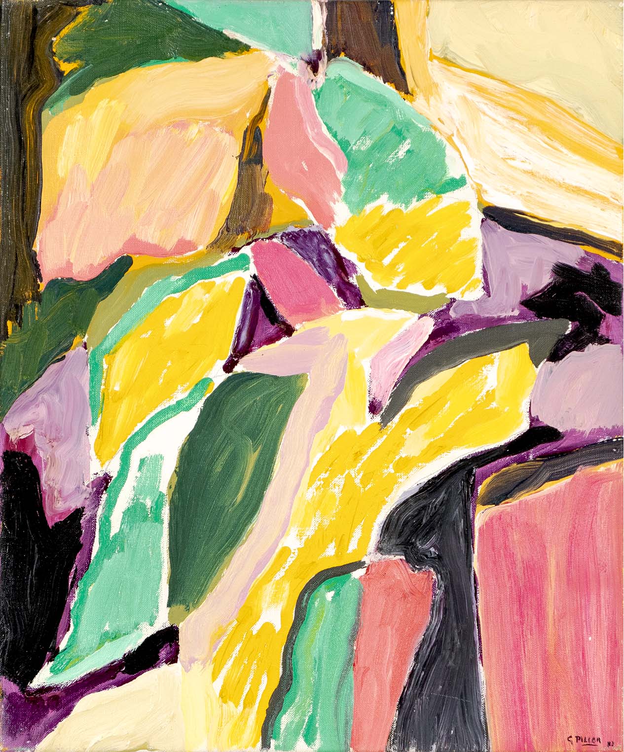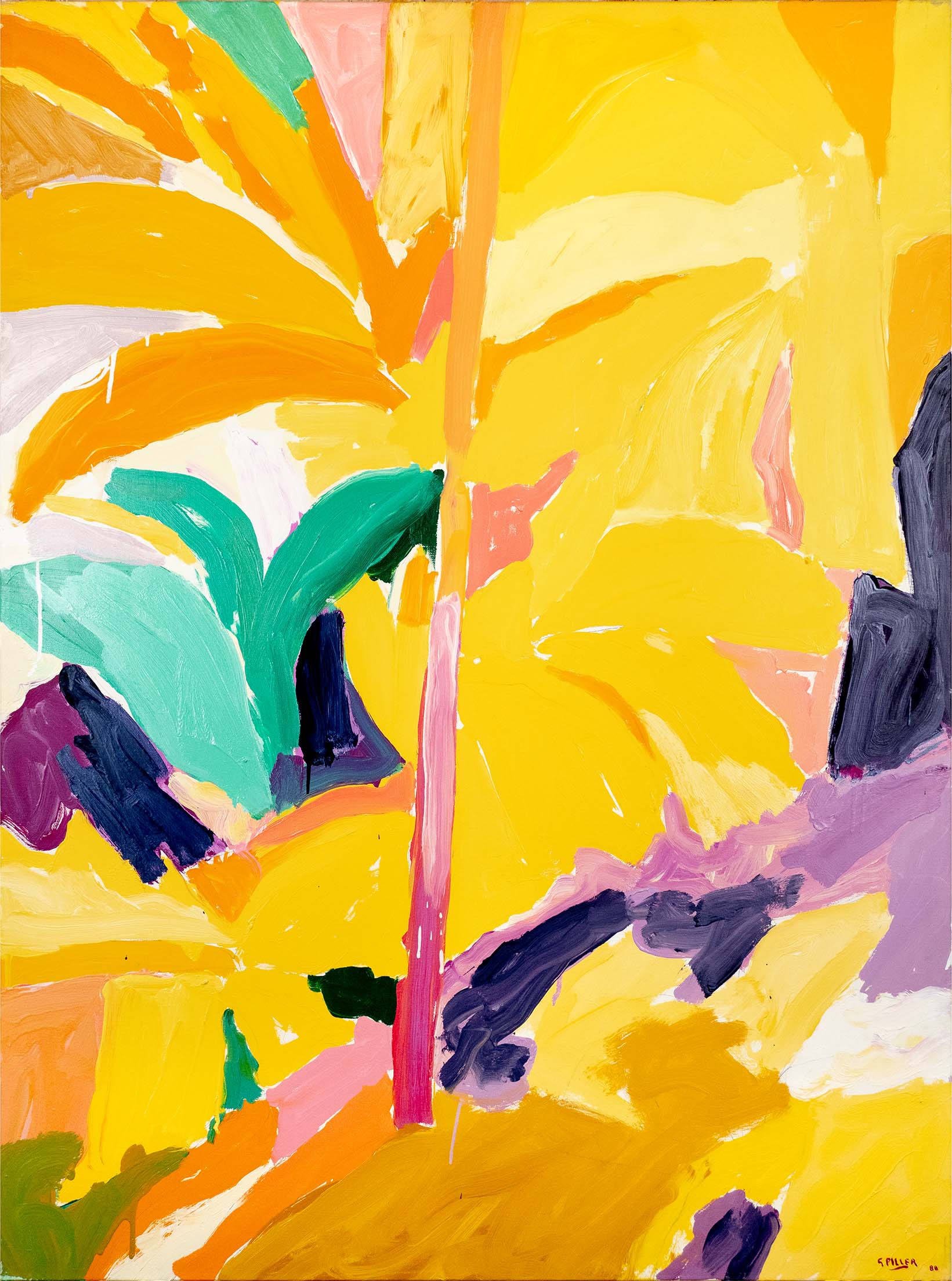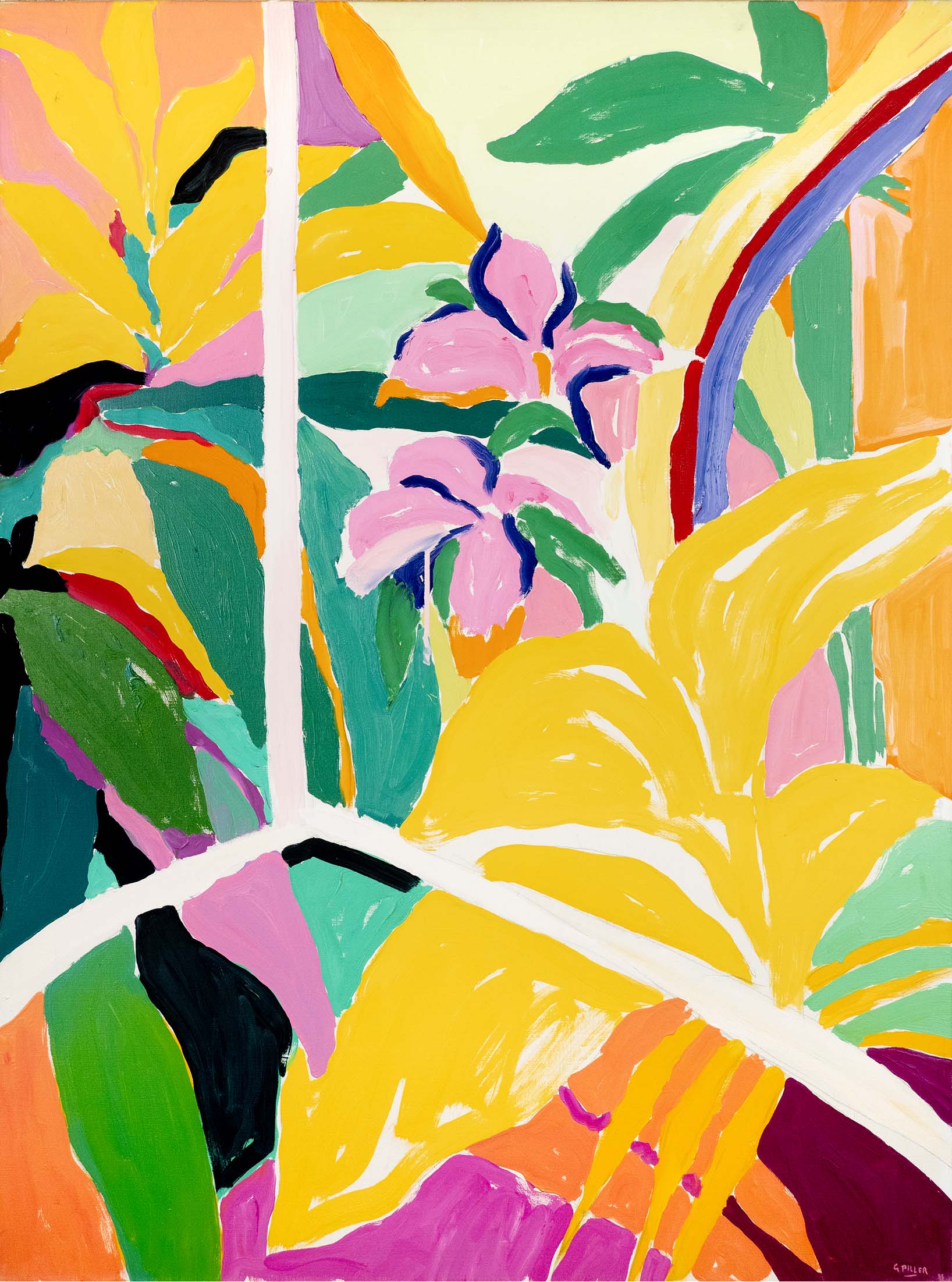 Les huiles du début de la décennie 1980 sont très proches des pastels qui les précèdent de quelques années. Le sujet y est encore largement reconnaissable : il s’agit souvent de formes végétales et d’intérieurs, qui ne sont pas sans évoquer la géométrie et la sensibilité d’un Matisse. Au fil du temps, le sujet s’estompe : l’inspiration végétale est encore prépondérante, mais les toiles gagnent en abstraction et deviennent de plus en plus le terrain de jeu de contrastes et de rythmes.