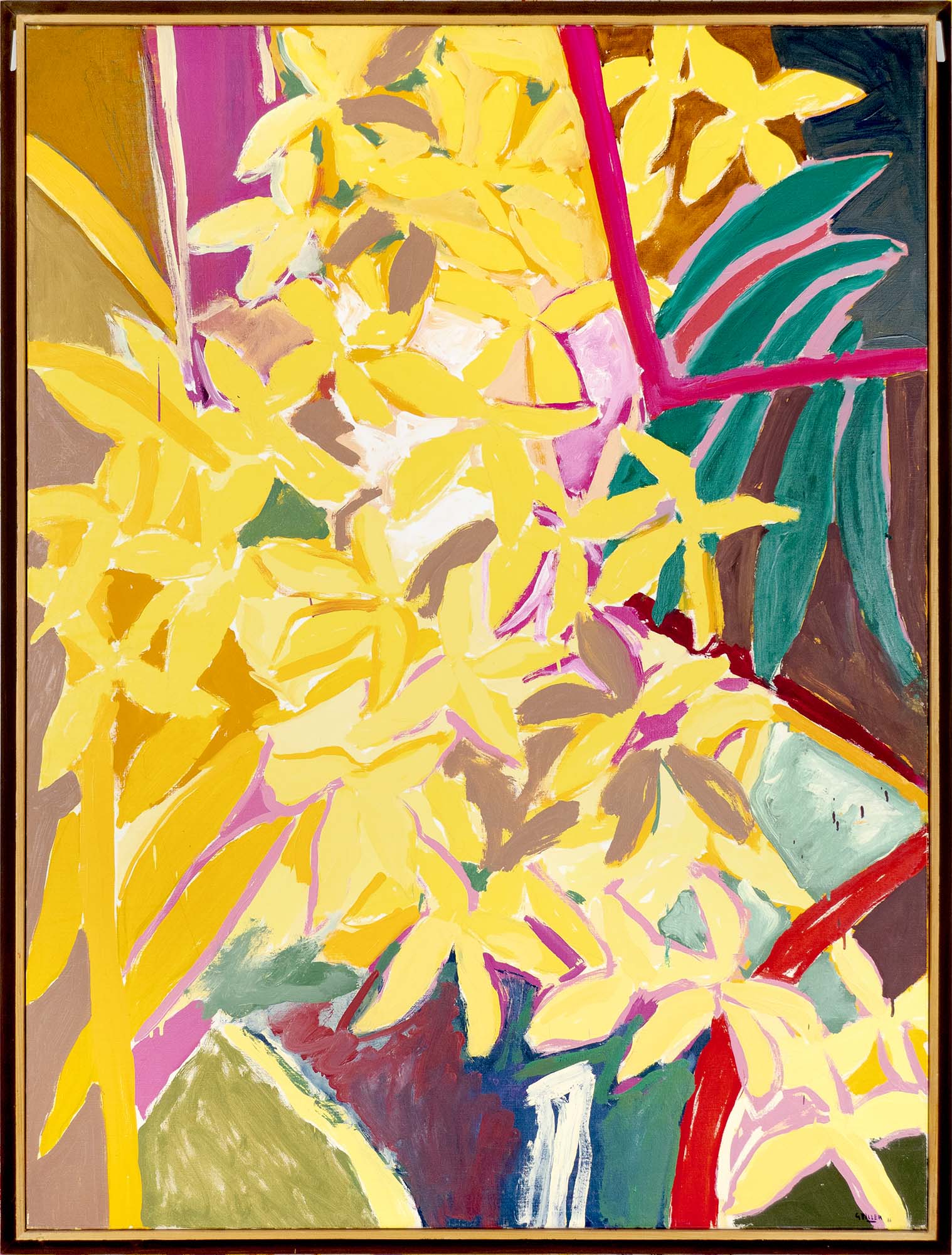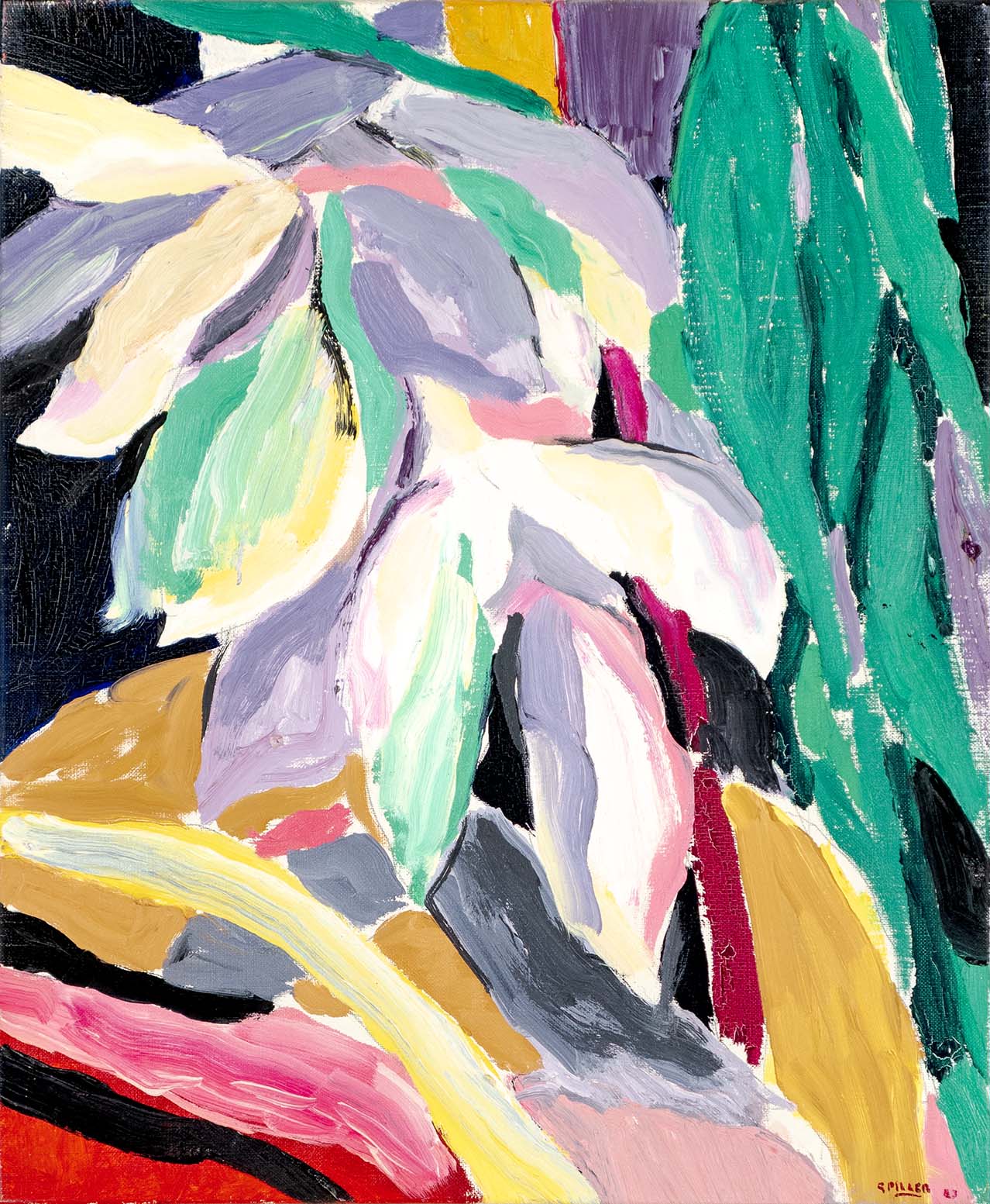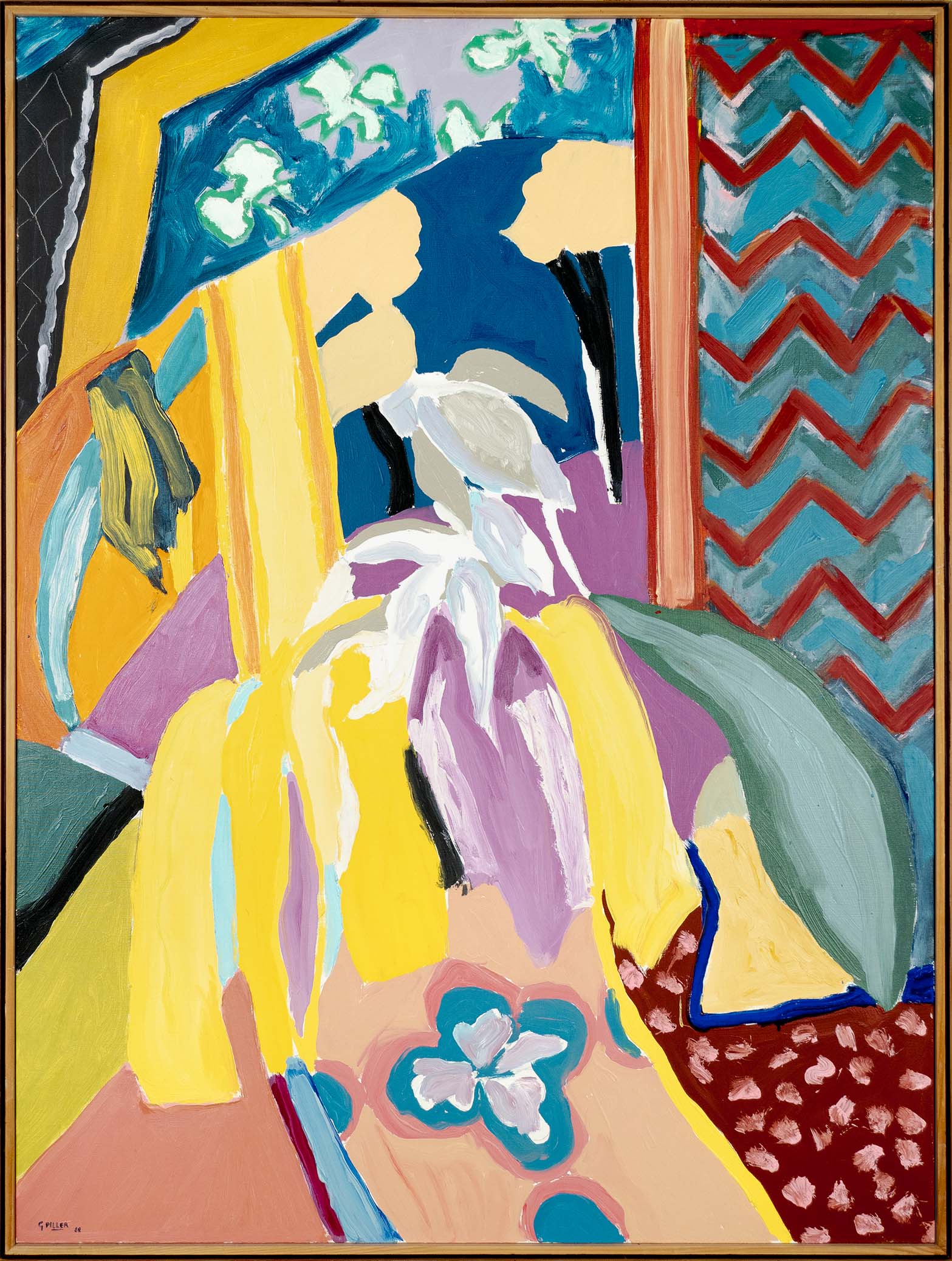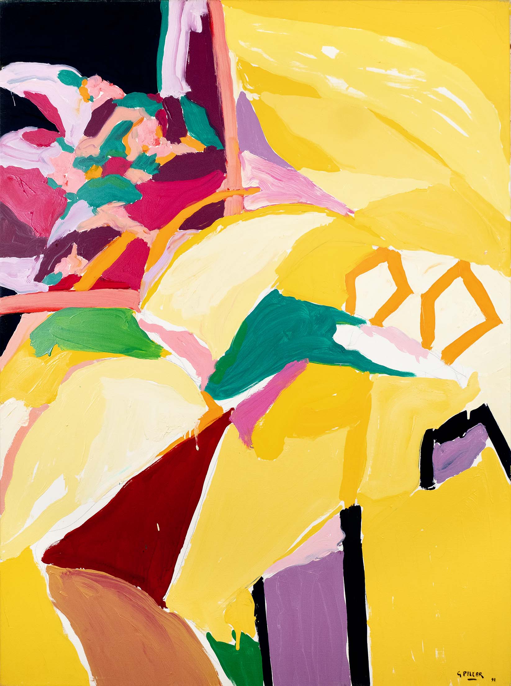 Les huiles du début de la décennie 1980 sont très proches des pastels qui les précèdent de quelques années. Le sujet y est encore largement reconnaissable : il s’agit souvent de formes végétales et d’intérieurs, qui ne sont pas sans évoquer la géométrie et la sensibilité d’un Matisse. Au fil du temps, le sujet s’estompe : l’inspiration végétale est encore prépondérante, mais les toiles gagnent en abstraction et deviennent de plus en plus le terrain de jeu de contrastes et de rythmes.