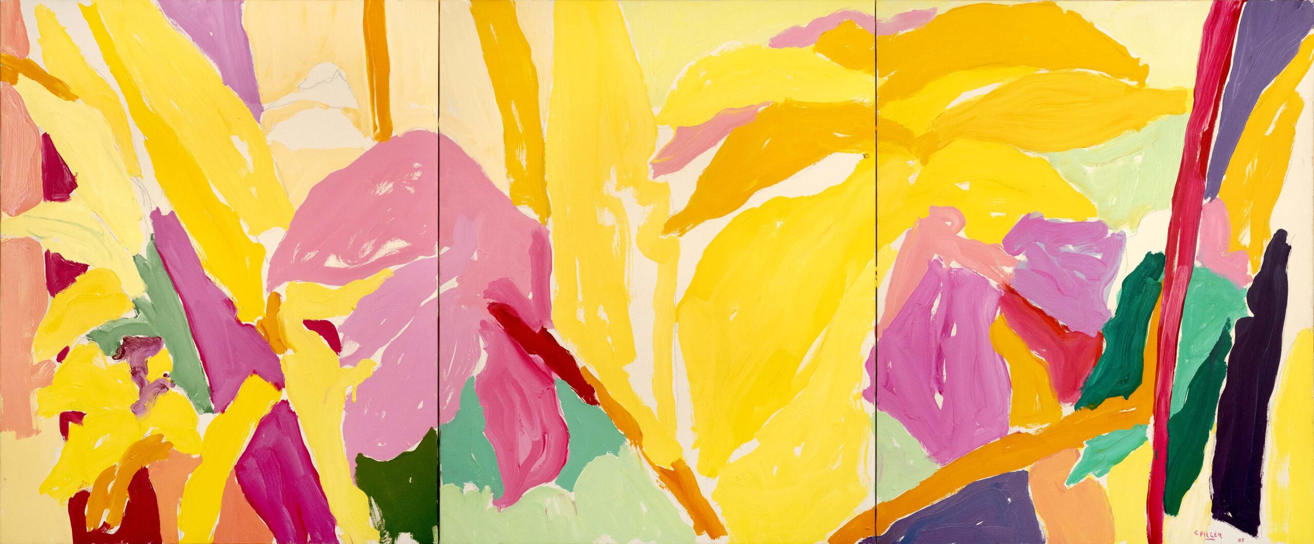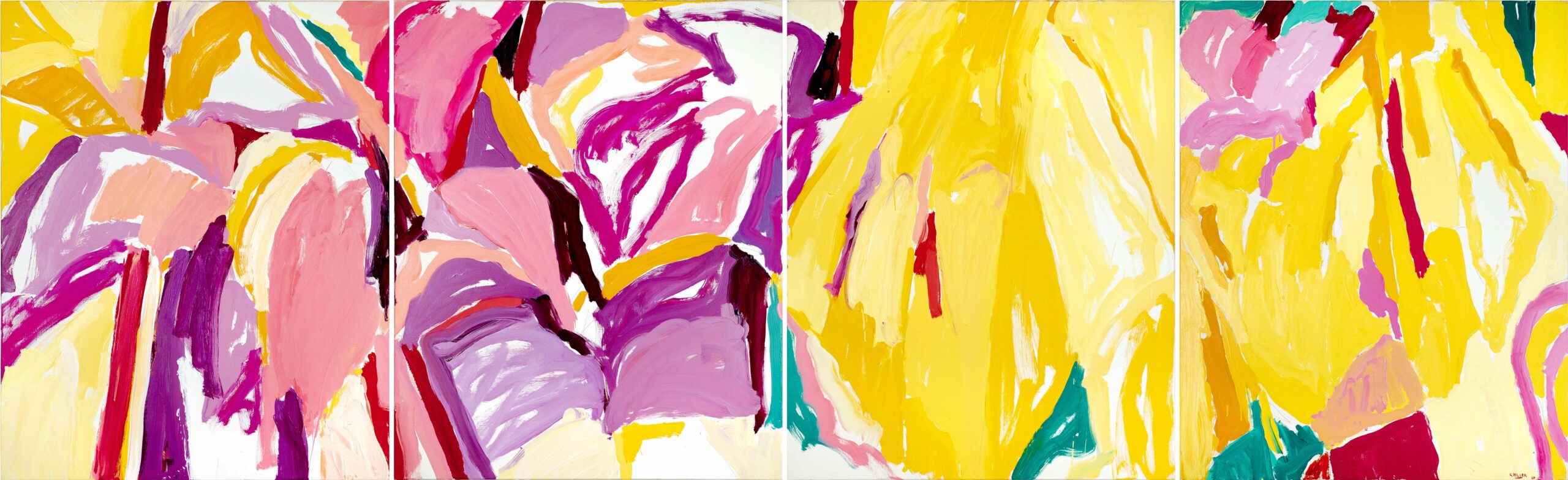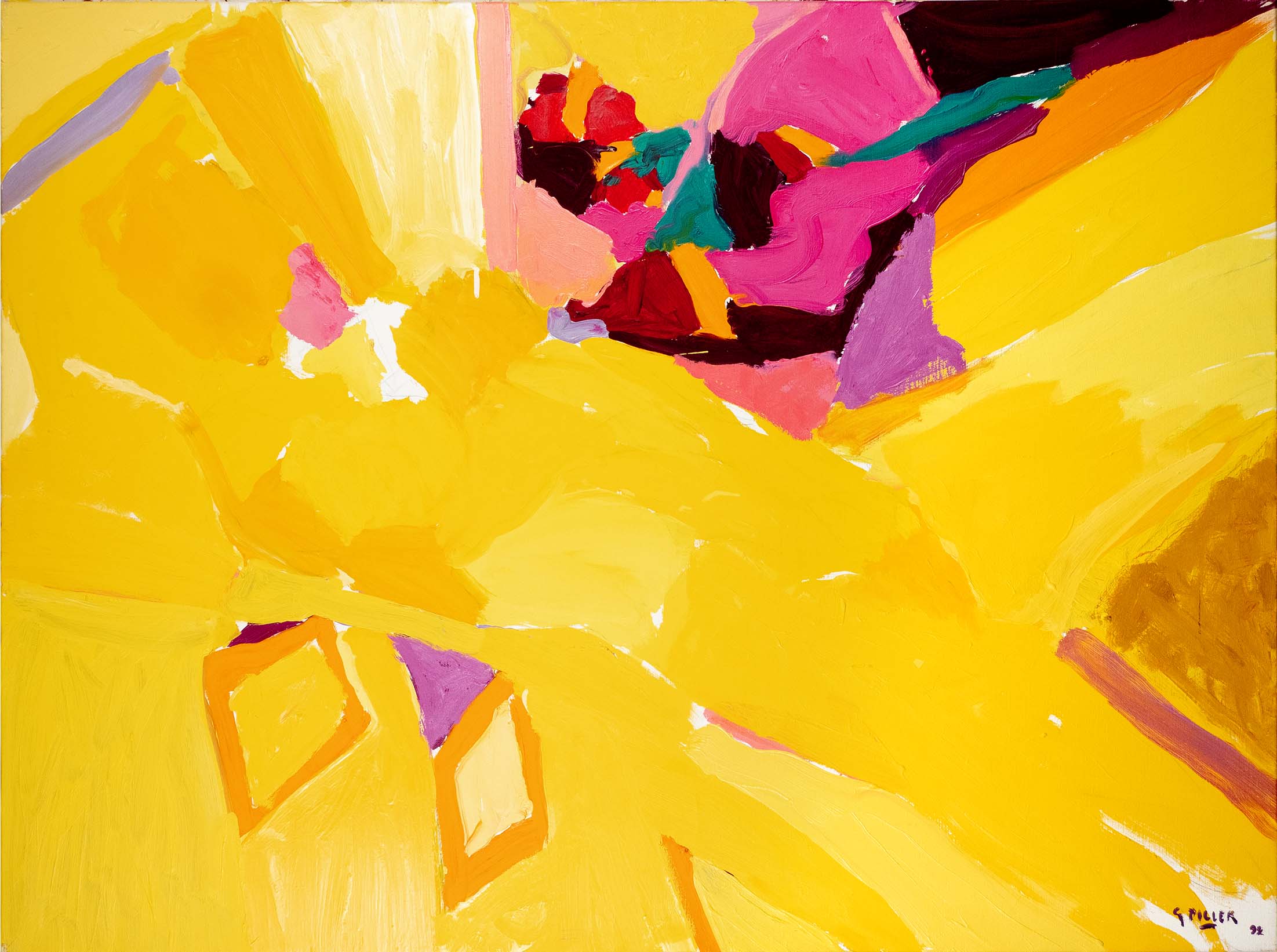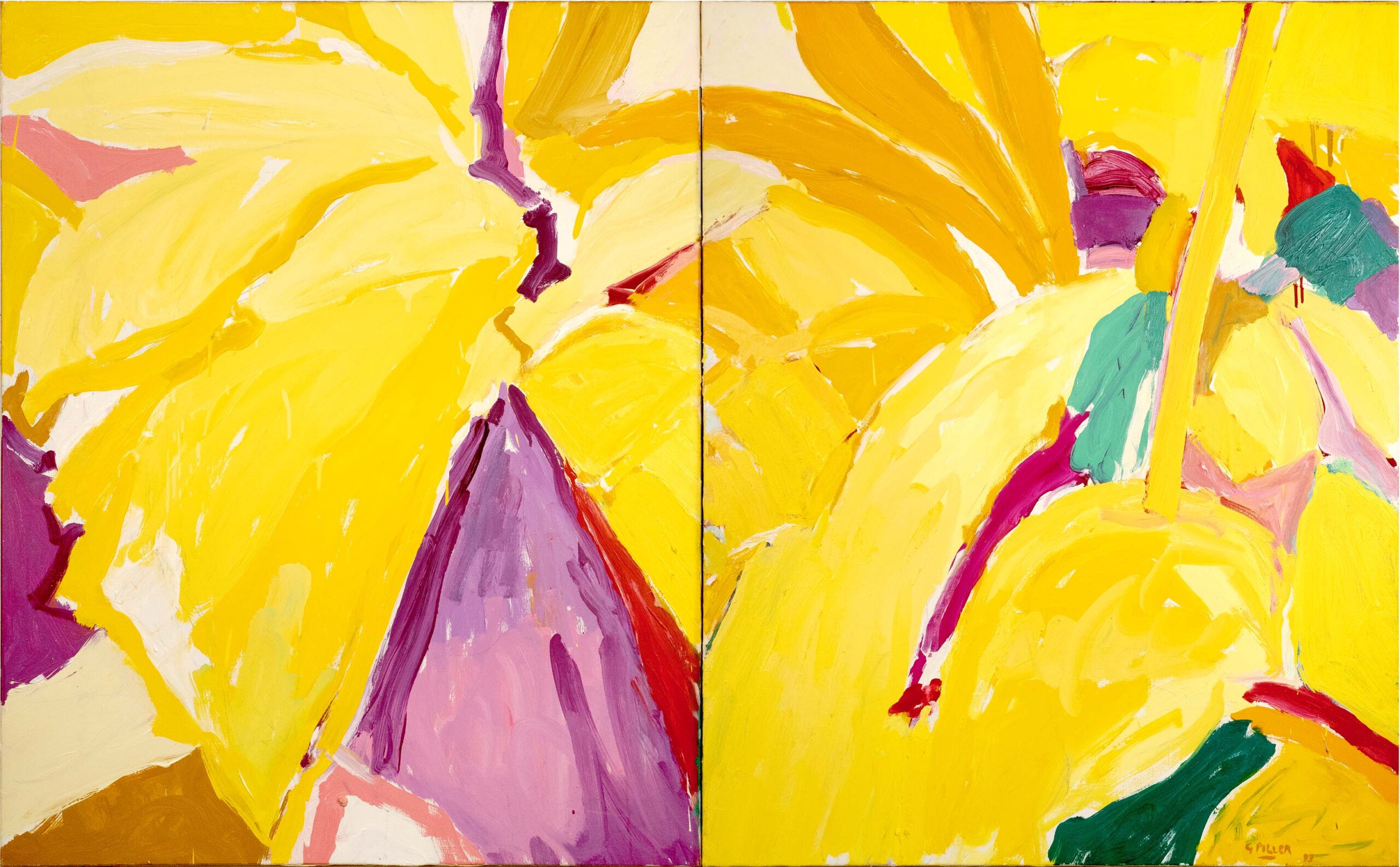 Les huiles du début de la décennie 1980 sont très proches des pastels qui les précèdent de quelques années. Le sujet y est encore largement reconnaissable : il s’agit souvent de formes végétales et d’intérieurs, qui ne sont pas sans évoquer la géométrie et la sensibilité d’un Matisse. Au fil du temps, le sujet s’estompe : l’inspiration végétale est encore prépondérante, mais les toiles gagnent en abstraction et deviennent de plus en plus le terrain de jeu de contrastes et de rythmes.
